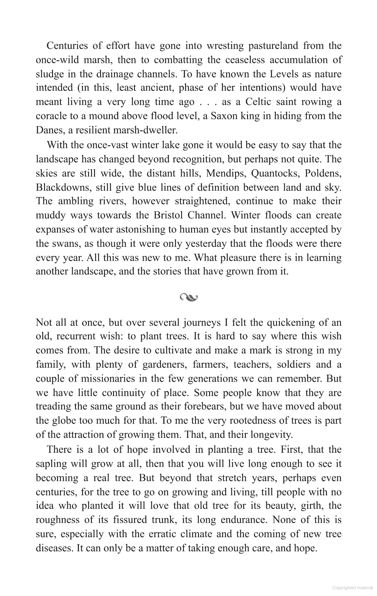 Touring the West Country in the late 1990s, Pavey found herself in the Somerset Levels. On seeing this expanse of reclaimed land under its wide, soft skies she was struck by its beauty and set-out to plant a wood, tree by tree. She bought four acres, and over the years transformed them into a haven where woodland plants and creatures could flourish; an emblem of enduring life in a changeable world.