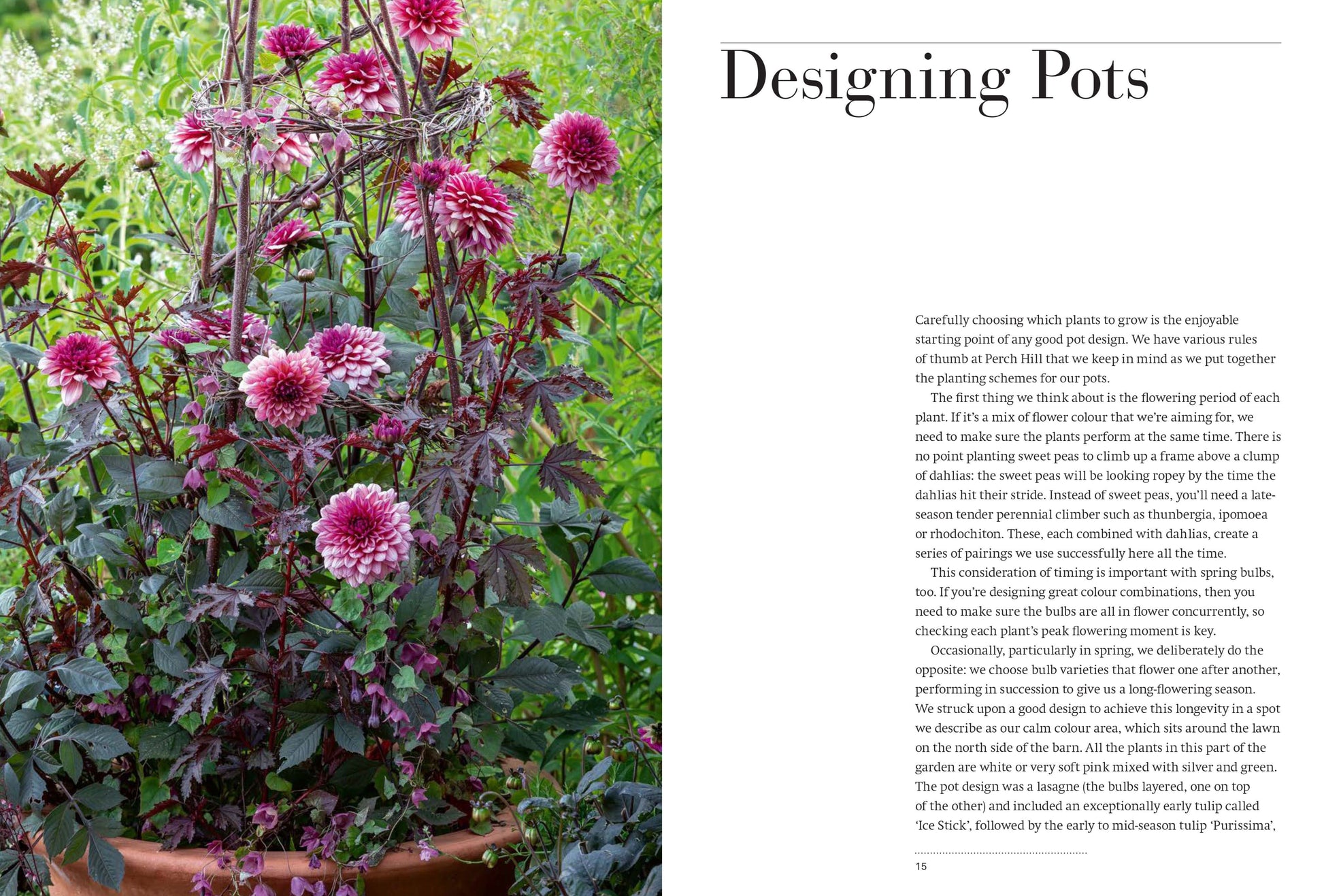 Growing flowers in pots is a simple and fun way to enhance any space, from small city plots to huge gardens. Get the pots right and your garden will take on a cheerful energy of its own. Here are practical design tips that will really enhance your containers, with ingenious tricks for combining flower colours, plant structures and placement. All the flowers and planting schemes have been tried and tested over decades, and have principles will work at any scale and across the seasons, whether you have one pot or a garden full of them.