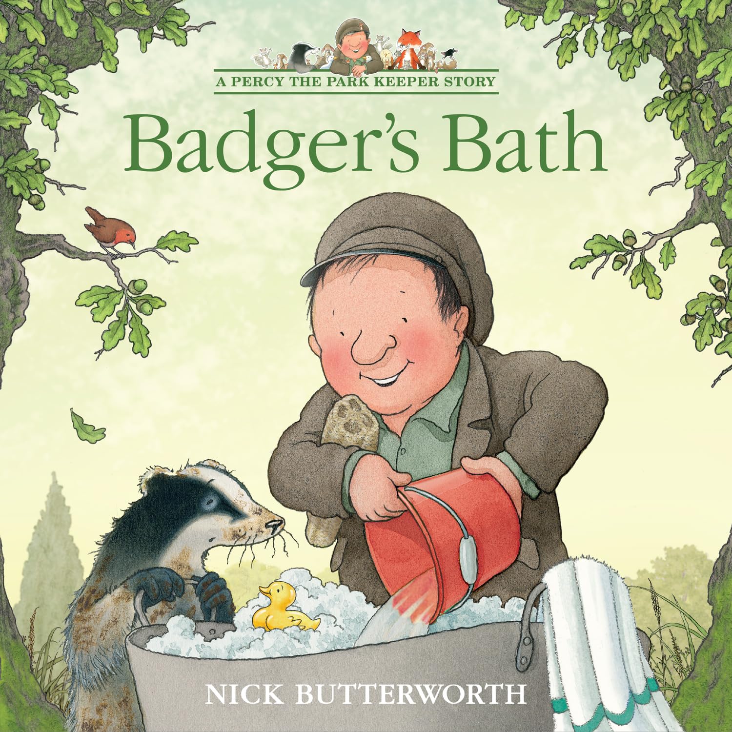 Percy the park keeper loves to help his animal friends, so when he sees how dirty the badger is, he prepares a special bath with warm soapy water. But just as it’s ready, the badger is nowhere to be seen…