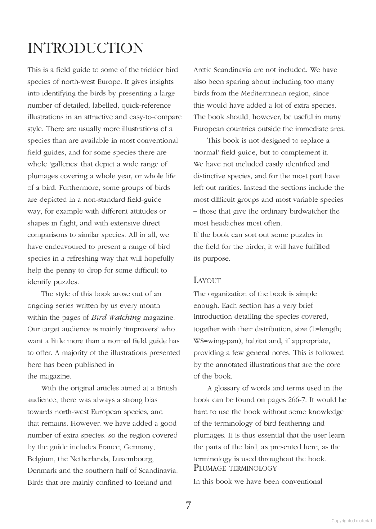 In total, the book covers more than 230 species, with easy-to-identify species such as Magpie and Kingfisher given minimal coverage so that the more difficult ID issues can be covered as fully as possible.