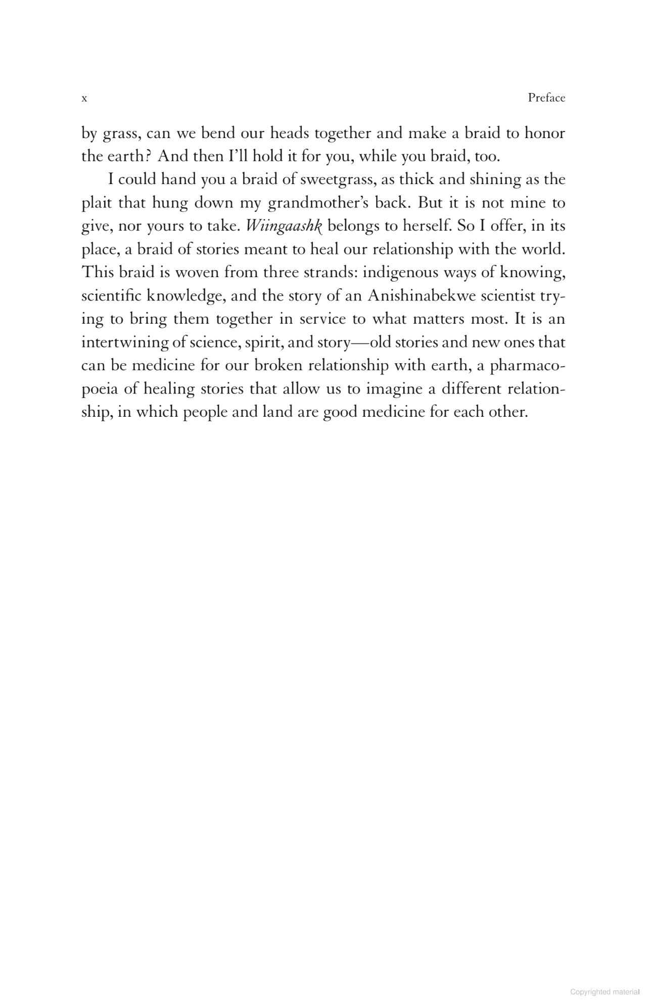 As a botanist, Robin Wall Kimmerer has been trained to ask questions of nature with the tools of science. As a member of the Citizen Potawatomi Nation, she embraces the notion that plants and animals are our oldest teachers. In Braiding Sweetgrass, she draws on her life as an indigenous scientist, a mother, and a woman, showing how other living beings - asters and goldenrod, strawberries and squash, salamanders, algae, and sweetgrass - offer us gifts and lessons, even if we've forgotten how to hear their voices.