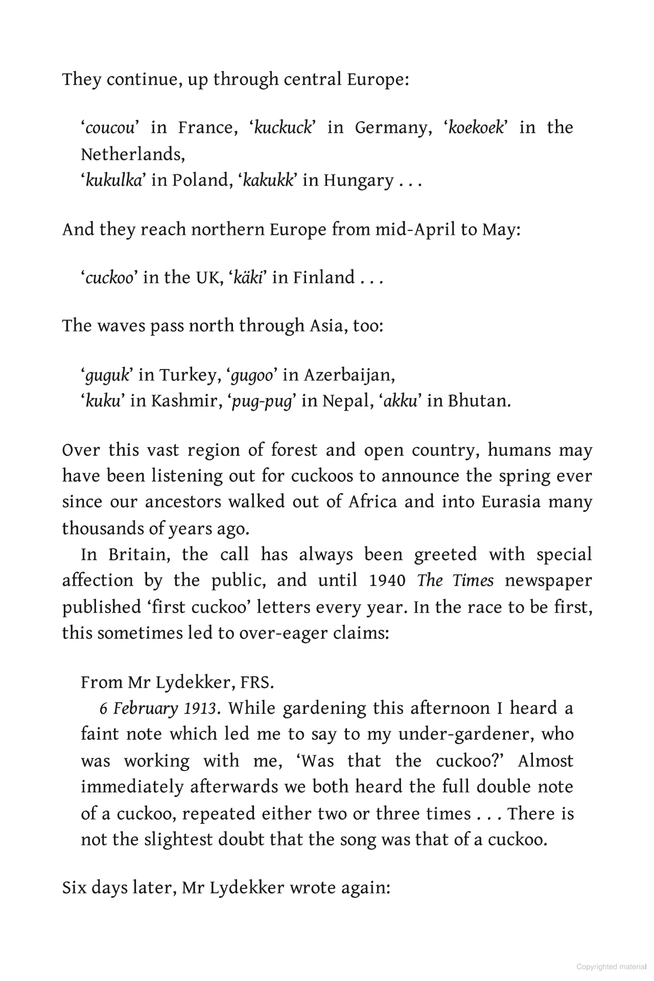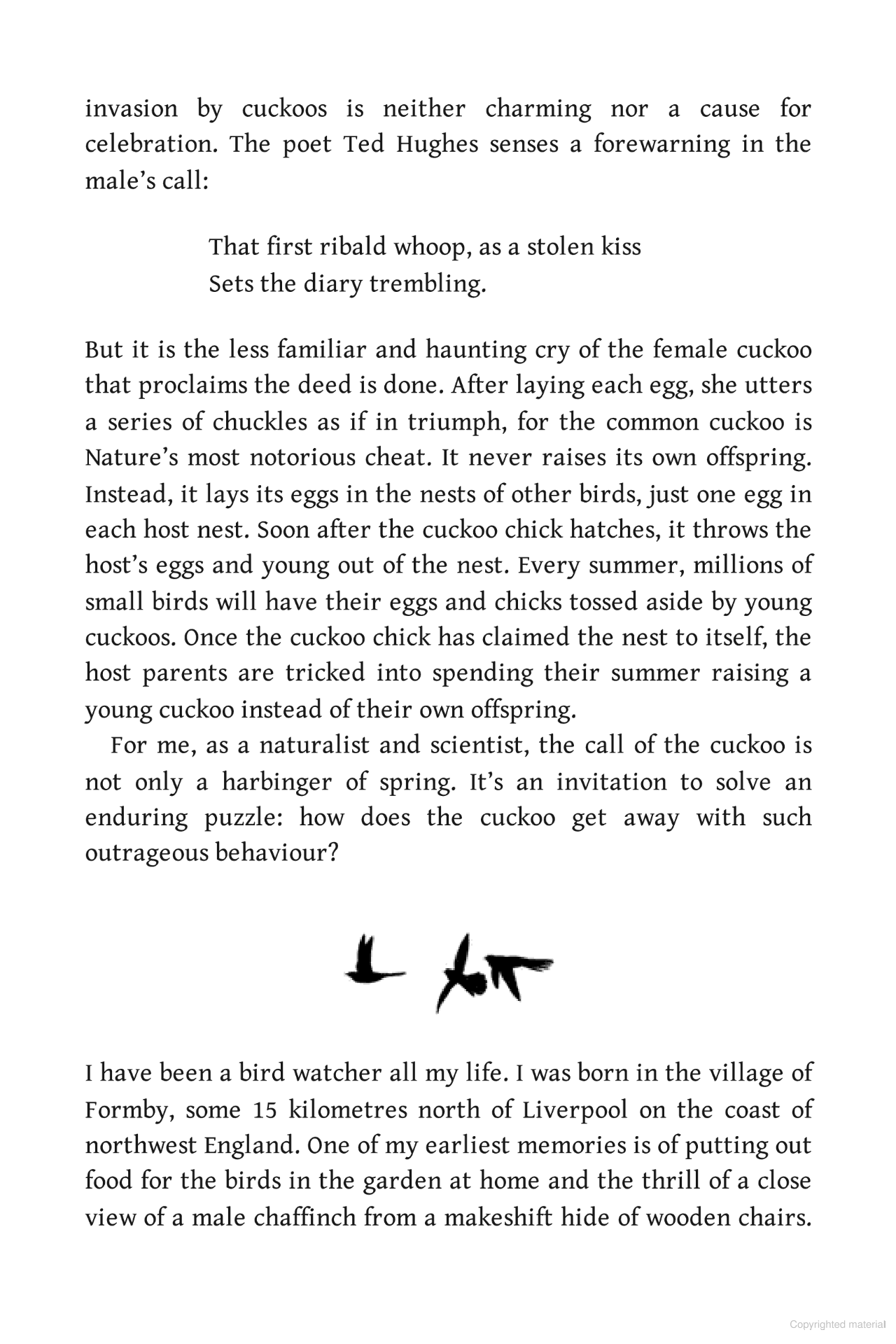 Beloved as a herald of spring, cuckoos have held a place in our hearts for centuries. But for many other birds the cuckoo is a signal of doom, for it is nature's most notorious cheat. In this enormously engaging book, naturalist and scientist Nick Davies reveals how cuckoos deceive other species, uncovering an evolutionary race between cuckoos and the hosts. Cuckoo offers a new insight not only into the secret lives of these extraordinary birds, but also how cheating evolves and thrives in the natural world.