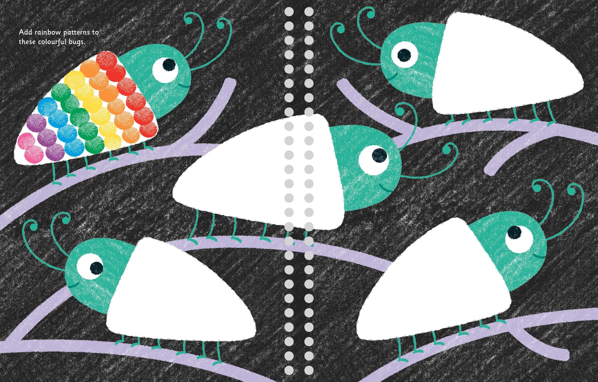 Bursting with fun fingerprinting ideas, this colourful activity book comes with its own inkpad of seven bright colours. Decorate the scenes with spiders, ladybirds, ants, bees and more. There are simple instructions showing how to fingerprint each creature and the book has a spiral binding so that it lies flat.
