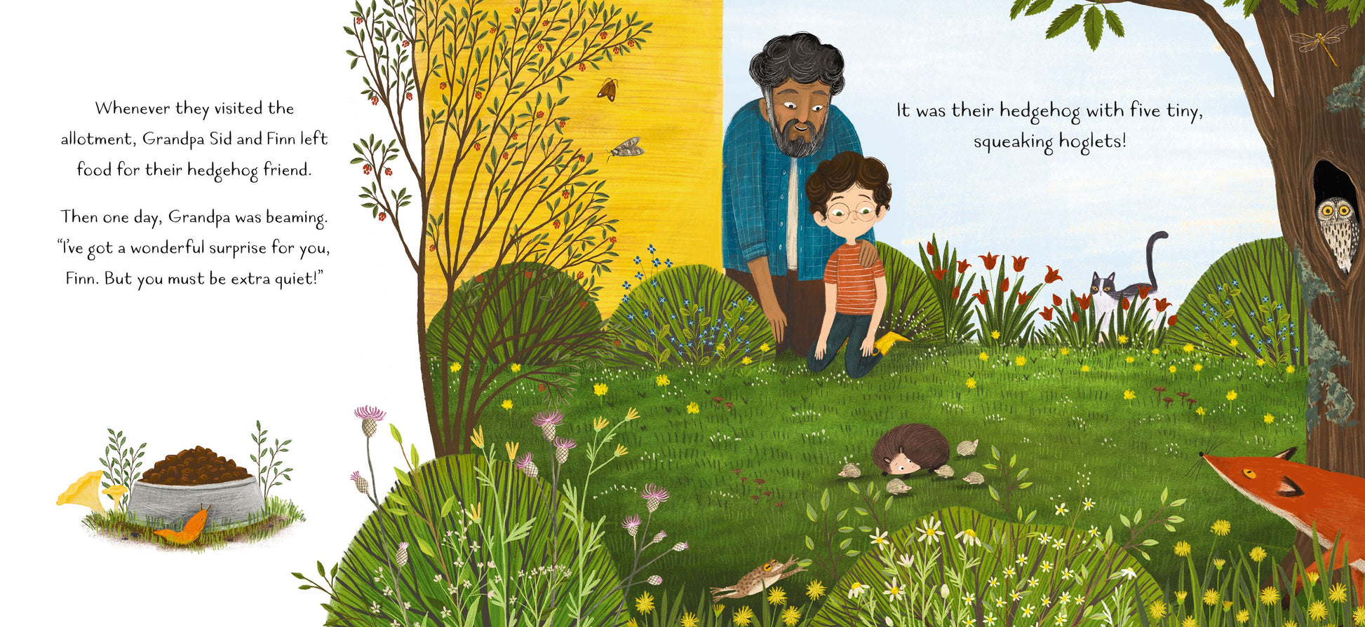 The first in the Finn's world series introducing urban rewilding for young readers. Nature loving Finn’s life has been turned upside down by a move to the city. All he can see is dull, grey buildings, But Grandpa has a surprise in store - his allotment! Finn quickly realises that nature can be found in the city, and is amazed by the discovery of a hibernating hedgehog. With Grandpa’s gentle guidance, Finn learns how to care for the hedgehog family as well as a hungry fox. With birds and plants galore, this beautifully illustrated, inspiring picture paperback has endpapers giving a directory of wildlife featuring all the common species that can be found in towns and cities. Also in the series Mia Makes A Meadow and Daisy And Jack's Perfect Pond.