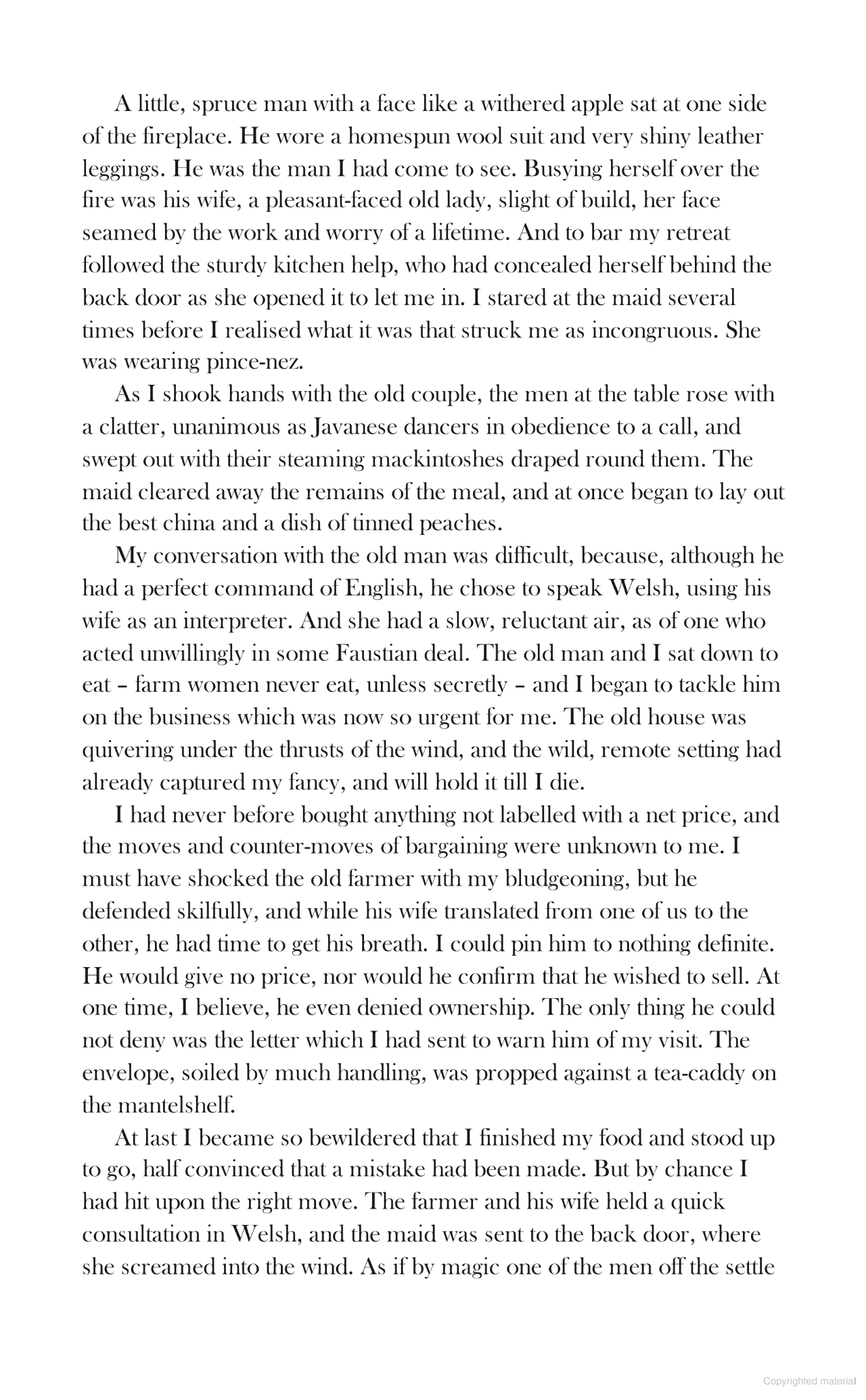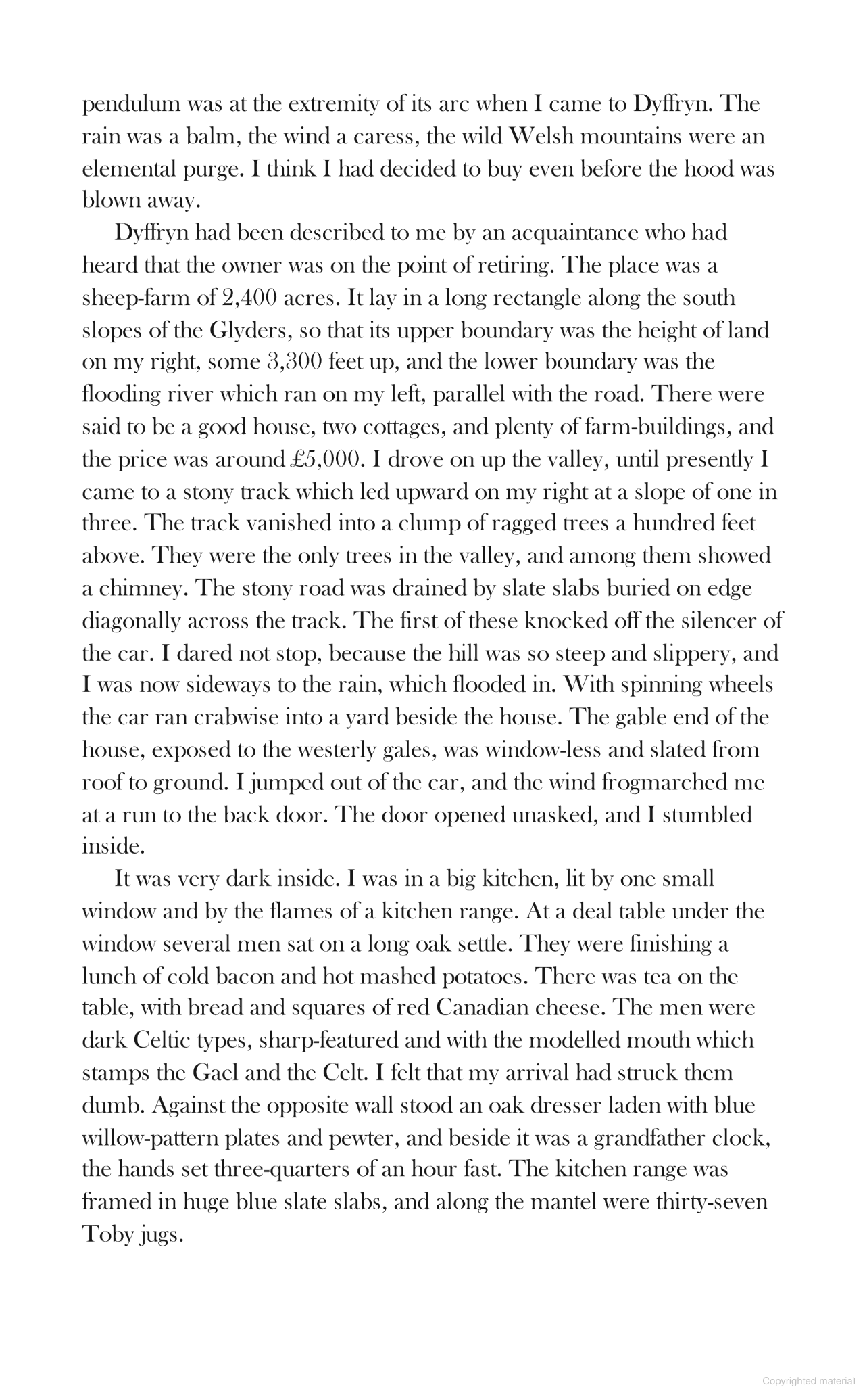 Written on the eve of the Second World War, this memoir tells the remarkable story of how 21-year-old Thomas Firbank decided on impulse to purchase a 2,400-acre hill farm in the rugged, inhospitable mountains of Snowdonia, and how he and his wife struggled to build it back into prosperity.