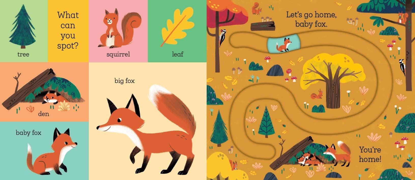 Meet rabbit, fox, bear and owl - four adorable baby animals who are lost in the woods. Can you help them find their way home? With easy-to-use moving parts and four unique tracks to develop hand-eye coordination and concentration, this robust board book will engage and entertain babies and toddlers.