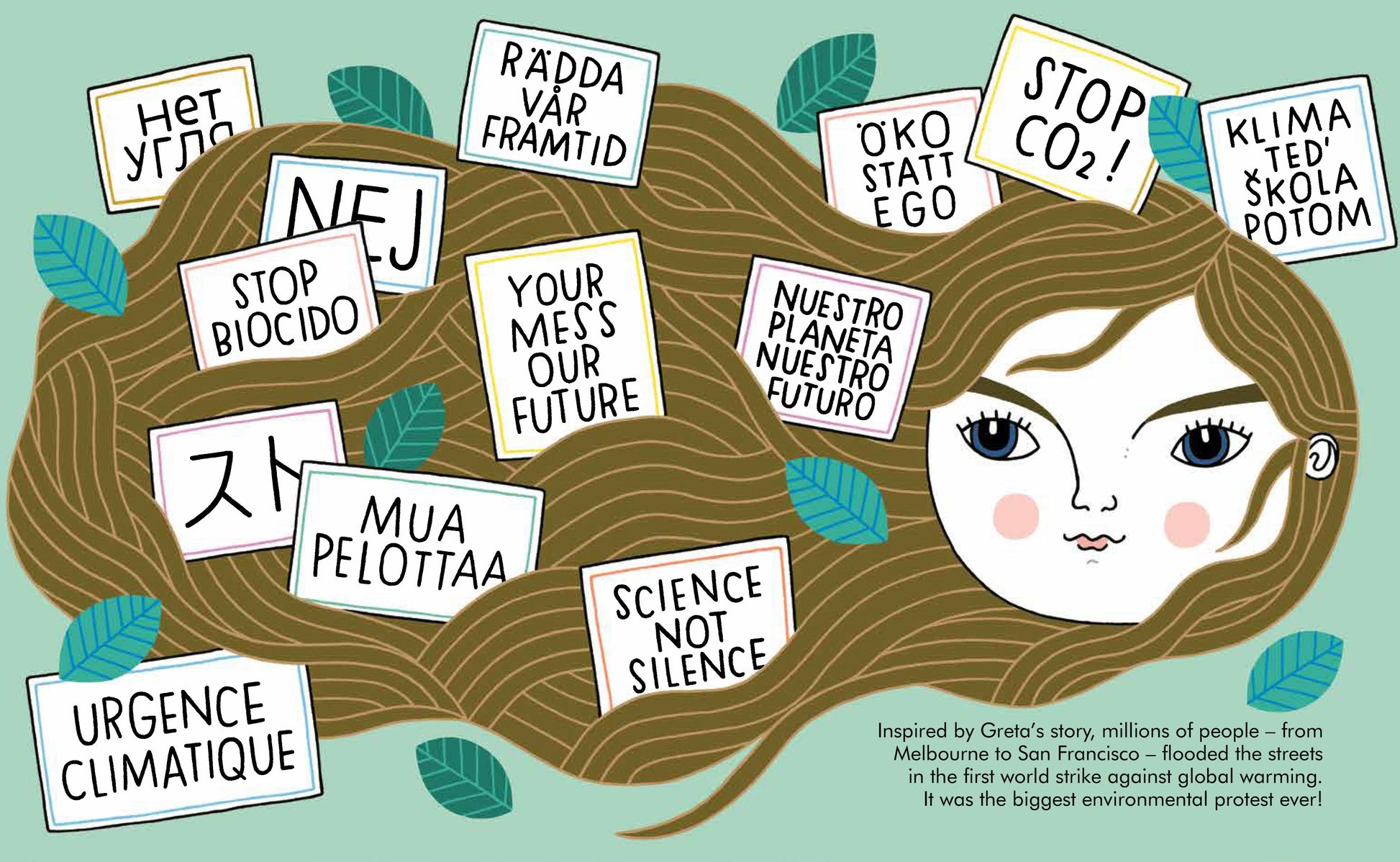 When young Greta learned of the climate crisis she stopped talking. She couldn't understand why people in power were not doing anything to save our Earth. One day she started striking from school in her 'School Strike for Climate'. Soon, lots more young people joined her, in a global movement that shook adults and politicians alike. She had found her voice, and she continues to use it to call people to action with her powerful message: 'No one is too small to make a difference.'