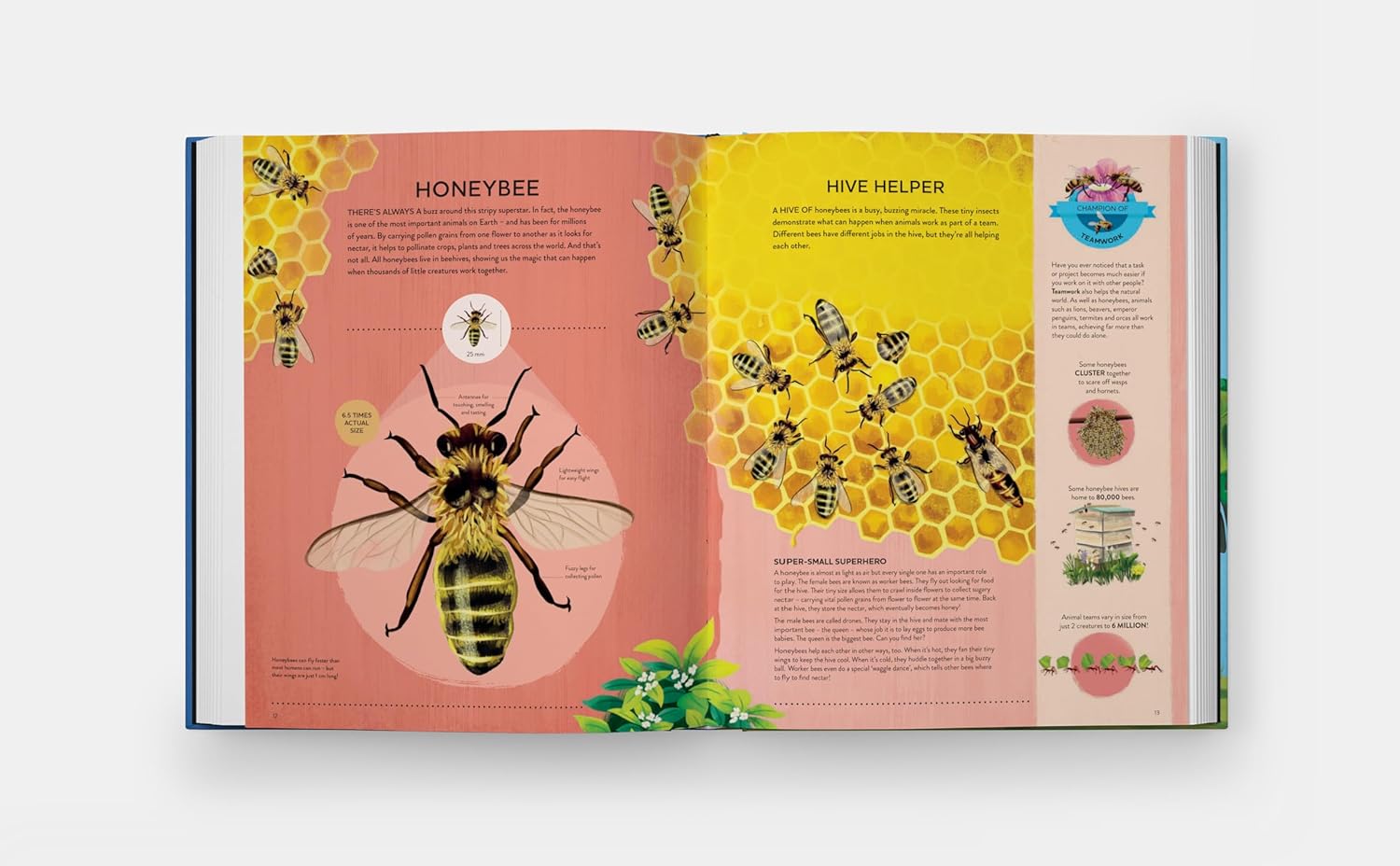 From the nocturnal dung beetle, Cape dwarf chameleon and golden poison frog to the bumblebee bat, reef starfish and bee hummingbird, this fascinating book reveals how 20 of the world’s tiniest insects, invertebrates, amphibians, reptiles, mammals and birds play key roles in natural phenomena such as migration, food chains and pollination. The vibrant illustrations and oversized format allow young readers to see subjects in stunning detail. Each miniature miracle-worker is represented with a life-size diagram for a clear sense of scale and detailed view of its unique attributes.