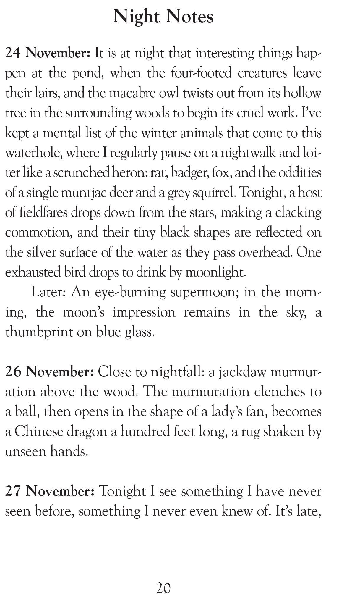As the human world settles down each evening, nocturnal animals prepare to take back the countryside. Taking readers on four walks through the four seasons, farmer and acclaimed nature writer John Lewis-Stempel reveals a world bursting with life and normally hidden from view. Beyond the cities, it is still possible to see the night sky full of stars and witness a moonbow, an arch of white light in the heavens. It is time for us to leave our lairs, go tramping, and join our fellow creatures of the night.