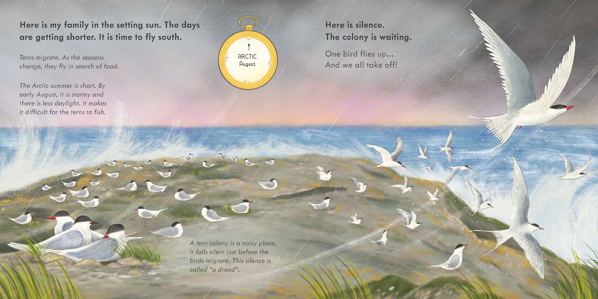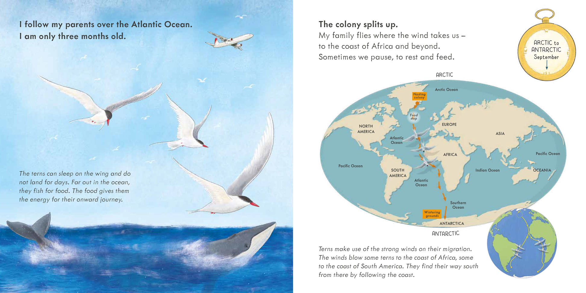 The fluffy chick that emerges from this small, speckled egg is an Arctic tern. This beautifully illustrated Start Small, Think Big book draws the reader into her world, to watch her grow from chick to fledgling to juvenile, and marvel at her long migration with her family from the top of the world to the bottom and back again. Includes a big fold-out map showing the tern's extraordinary migration, as well as an illustrated lifecycle, big-thinking stats and facts, and an I-Spy of the polar animals for young readers to go back and find in the book.