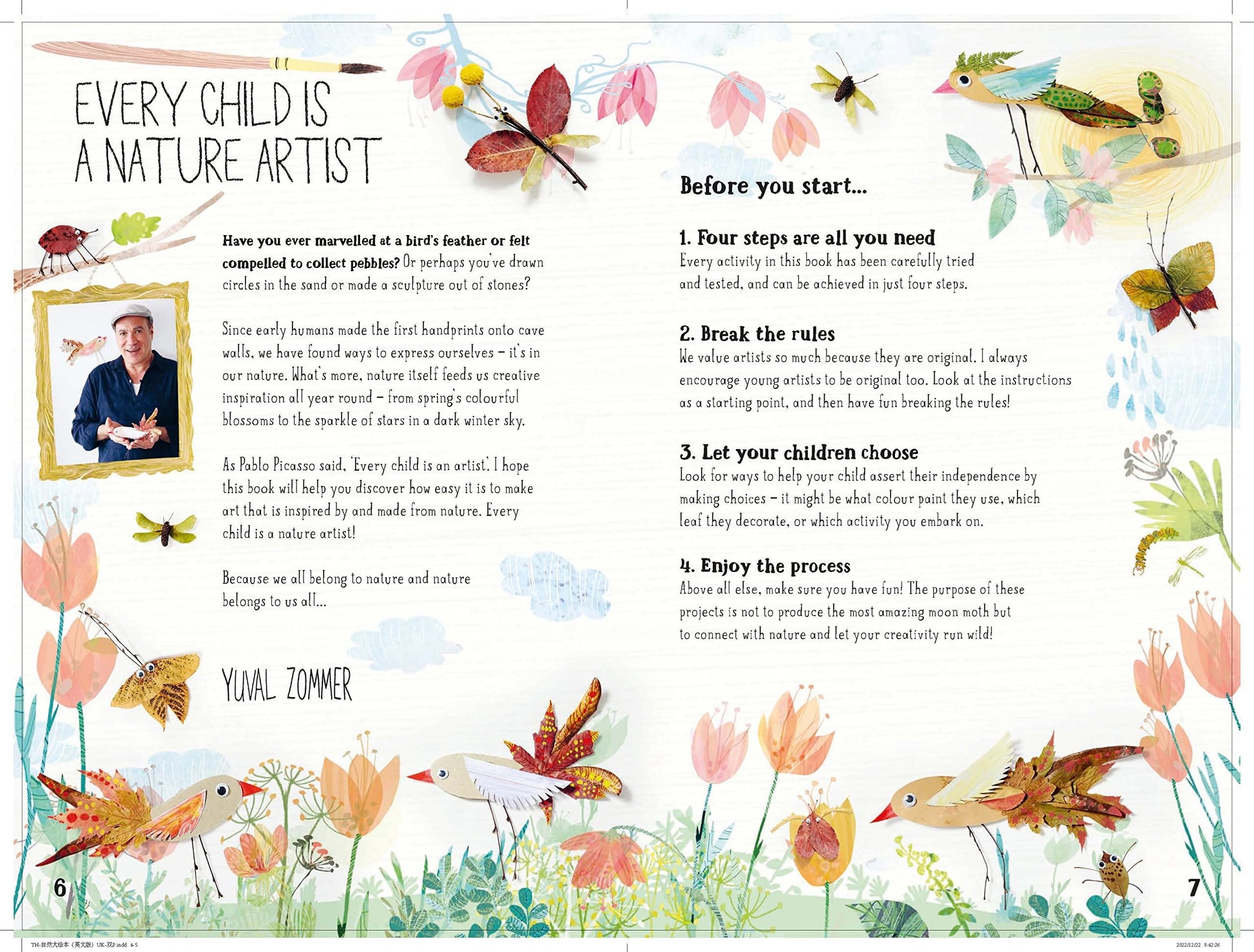 Drawing on Yuval Zommer’s years of experience running art workshops for children, this book presents 22 easy craft projects alongside the author’s tips for stress-free ways to get creative with kids. Each nature art activity requires no more than five minutes set-up and five minutes clean-up, making it easy to achieve and fun for everyone involved. The book also encourages children to see the creative potential in the natural and everyday treasures all around us – from twigs, seed pods, petals and leaves through to loo rolls, pencil shavings, takeaway cutlery and kitchen string.