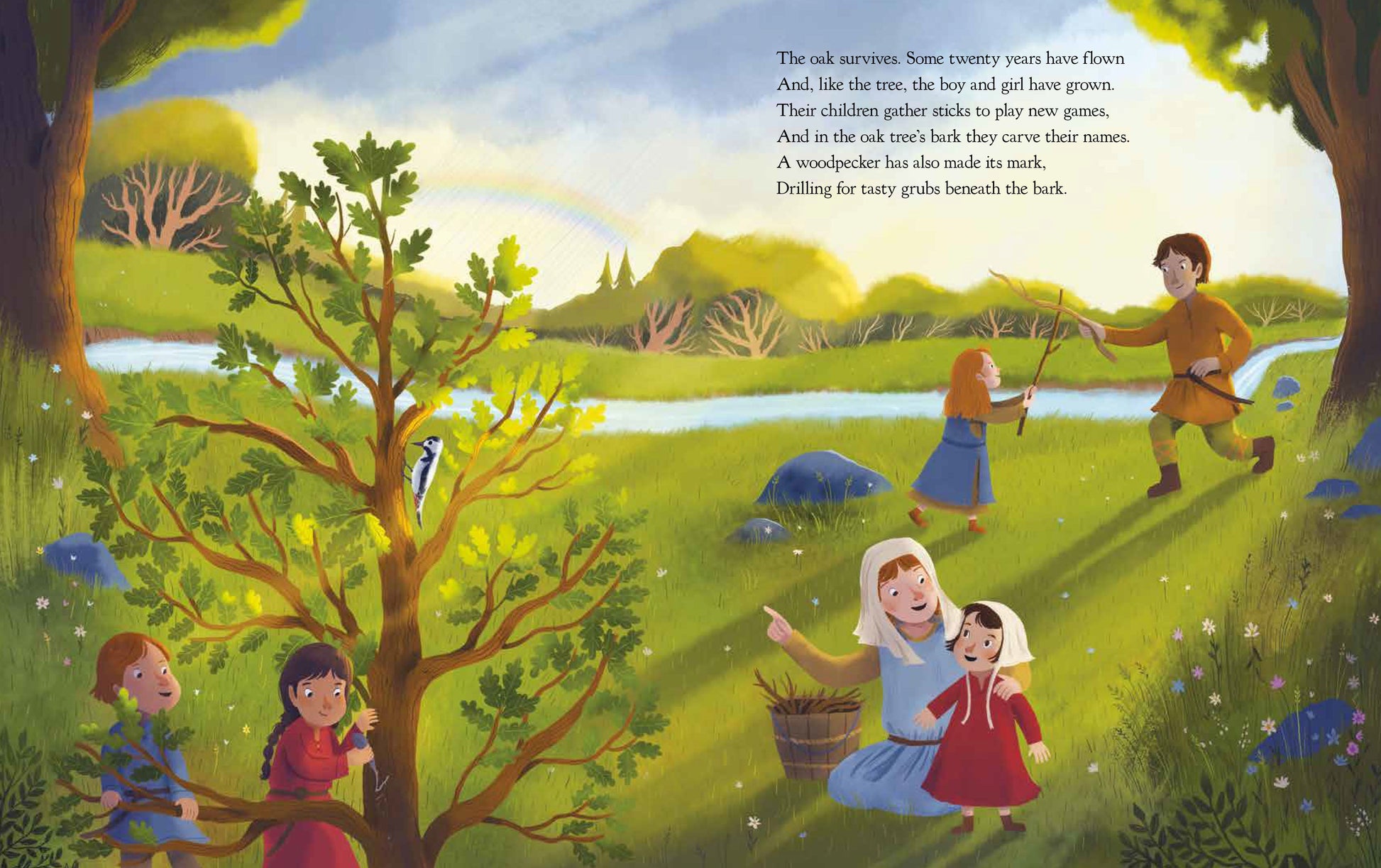A thousand years ago, a tiny acorn fell to the ground, and began growing into an enormous oak tree. As the centuries sweep by, children play games around the tree. Families dance about it. The tree gives food and shelter to a host of animals, from squirrels and badgers to birds and beetles. After a thousand years, the ancient tree finally falls in a storm - but a new acorn sprouts, and the cycle of life begins all over again.