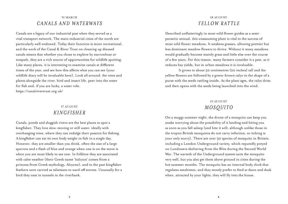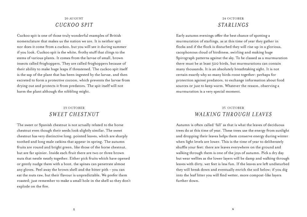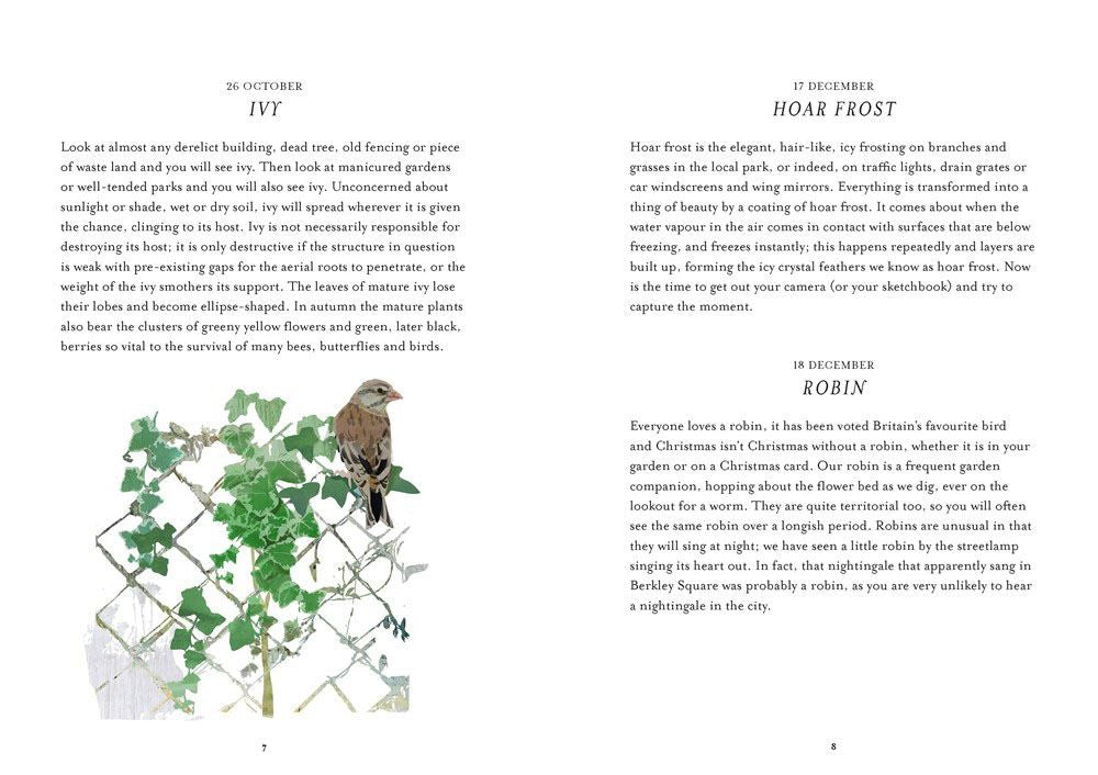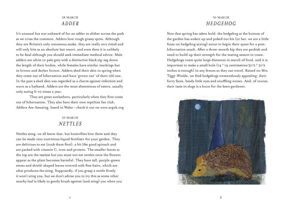 366 prompts for looking for nature in an urban setting every day of the year, such as foxes prowling in your garden, wildflowers sprouting from a crack in the pavement, butterflies on your balcony, and the joys of wandering along a canal path. Learn how to put up a bug hotel on January 5th, search for cherry blossom on April 4th and have a picnic underneath a willow's branches on the 11th of June. Proof positive that you don't need a trip to the countryside to enjoy the natural world.