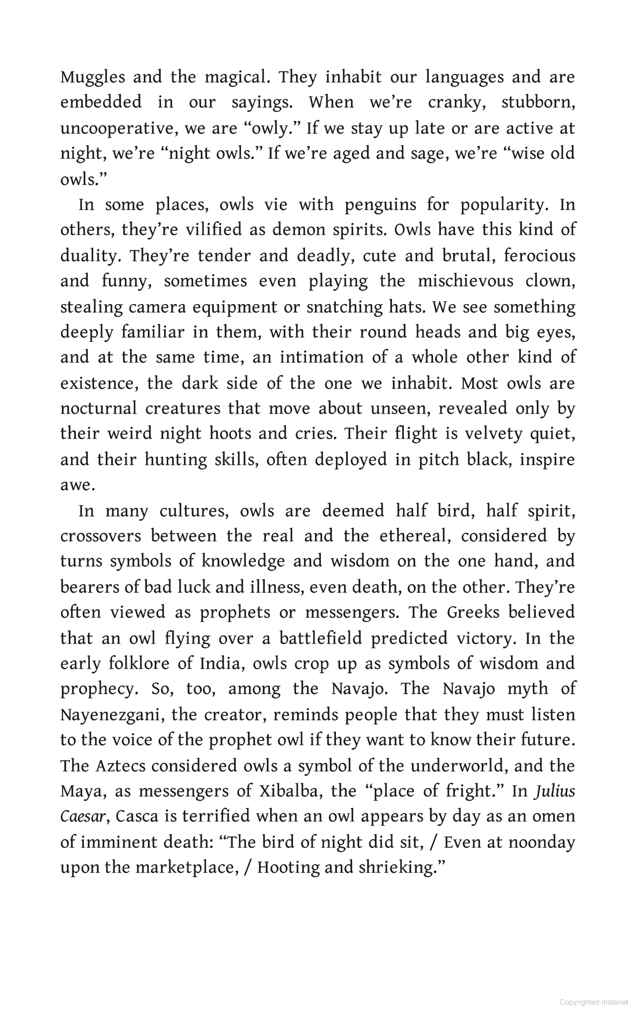 Whether they appear as ancient Athenian symbols of wisdom, ghostly harbingers of death, or the cuddly sidekicks of Harry Potter and Winnie the Pooh, these birds have continued to fascinate and disturb us in equal measure.