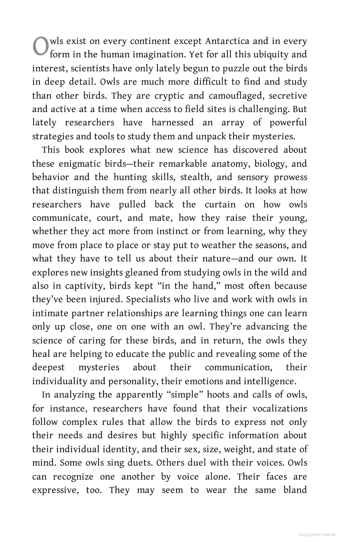 'Once again, Jennifer Ackerman has written a fascinating, fact-filled and wonderfully readable work of popular science – this time on one of the most mysterious and charismatic of all bird families: the owls.' STEPHEN MOSS
